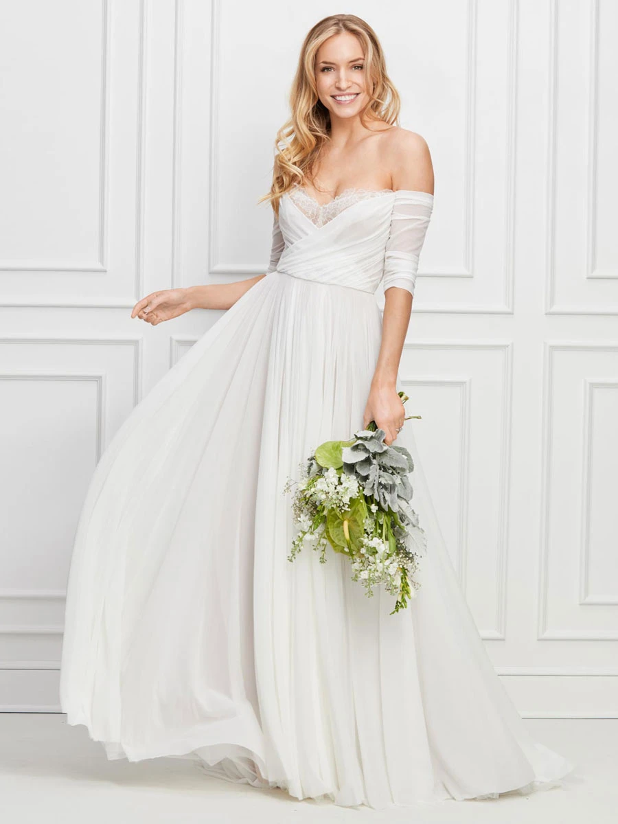 | Silhouette | A-Line | Neckline | Sweetheart, Off-the-Shoulder |