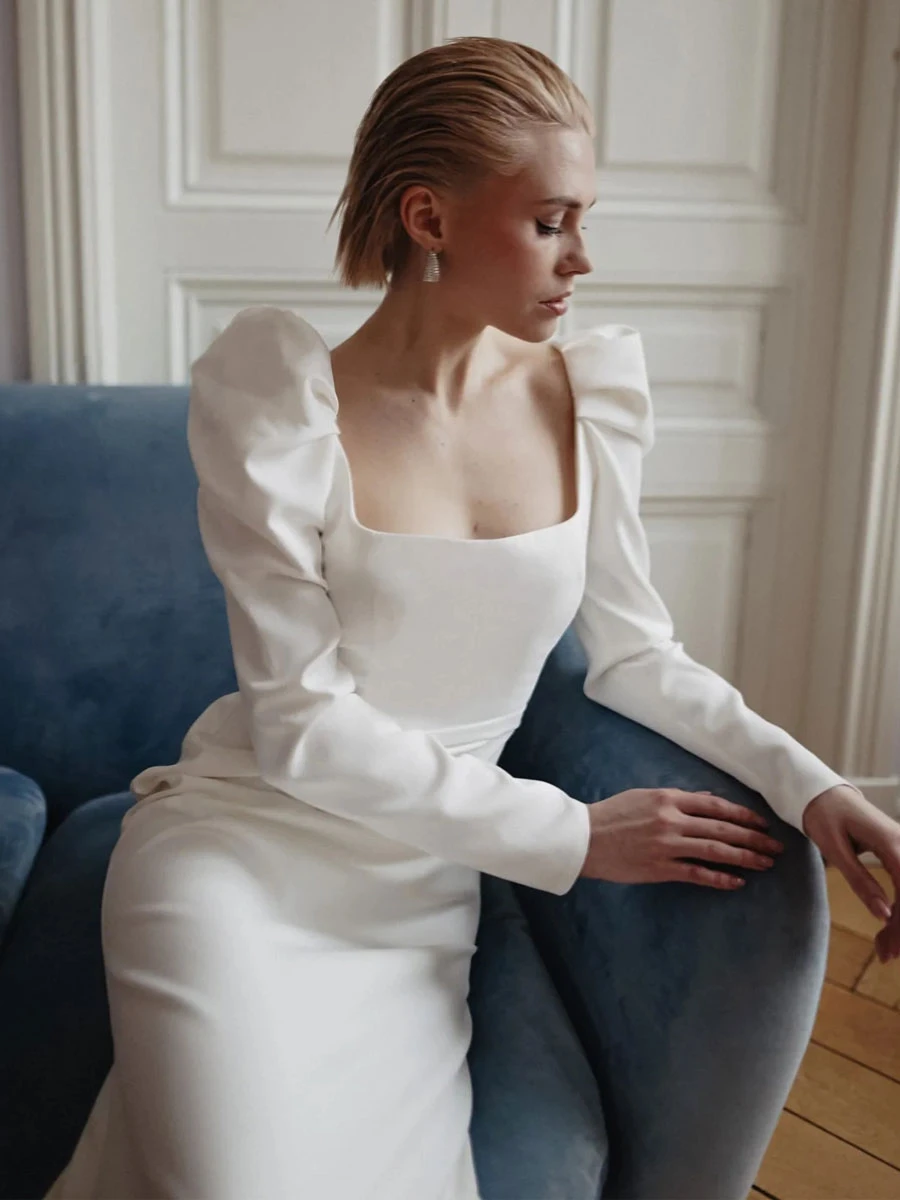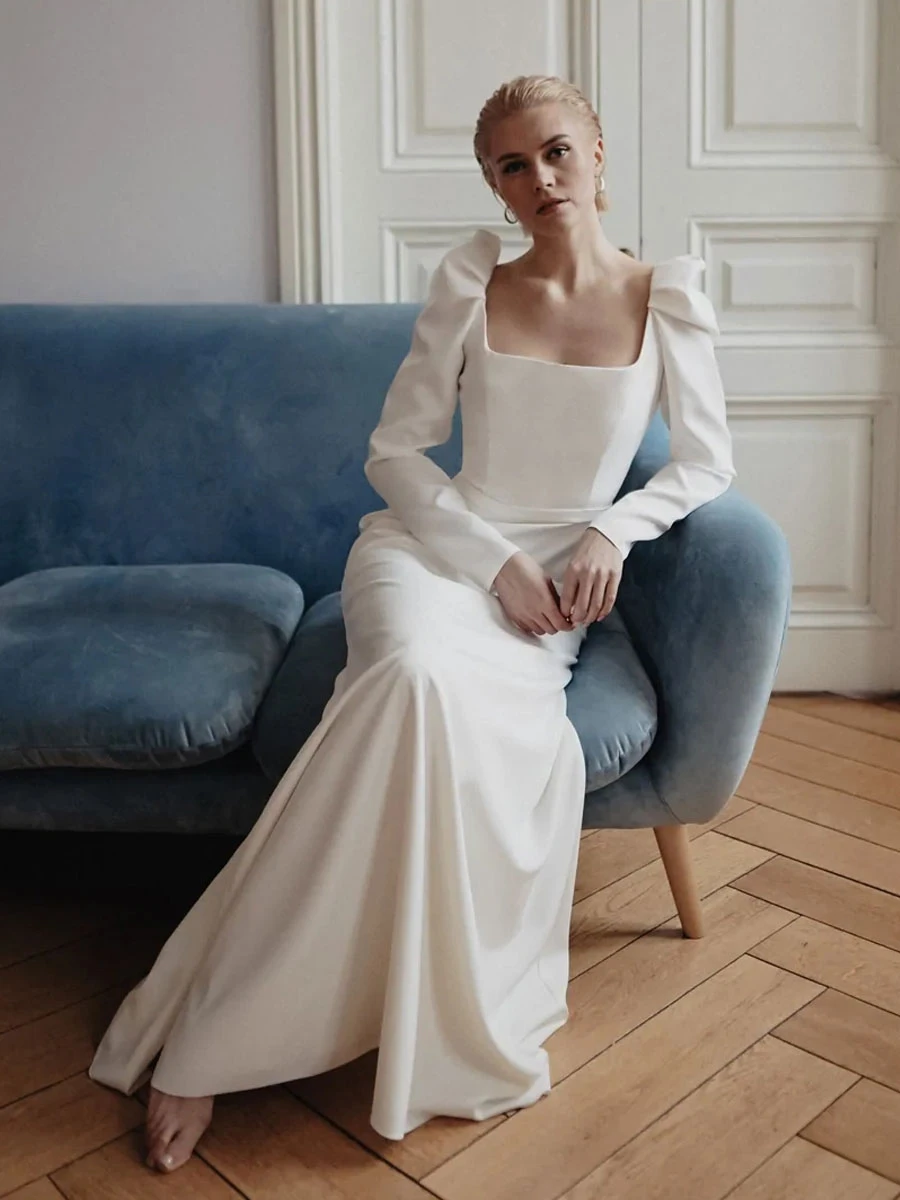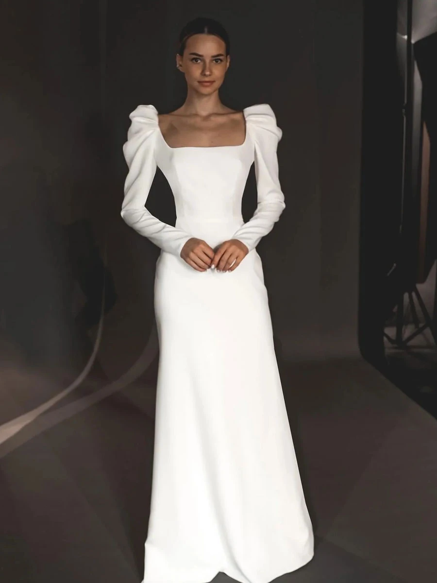 Simple Wedding Dress 2023 Mermaid Square Neck Long Sleeves Sash Bridal Dresses Free Customization