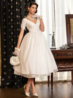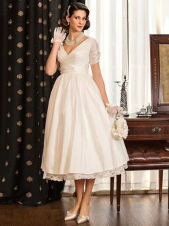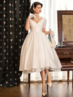 Be the first to review “Simple Wedding Dress A-Line V-Neck Short Sleeves Bridal Dresses Free Customization” Cancel reply