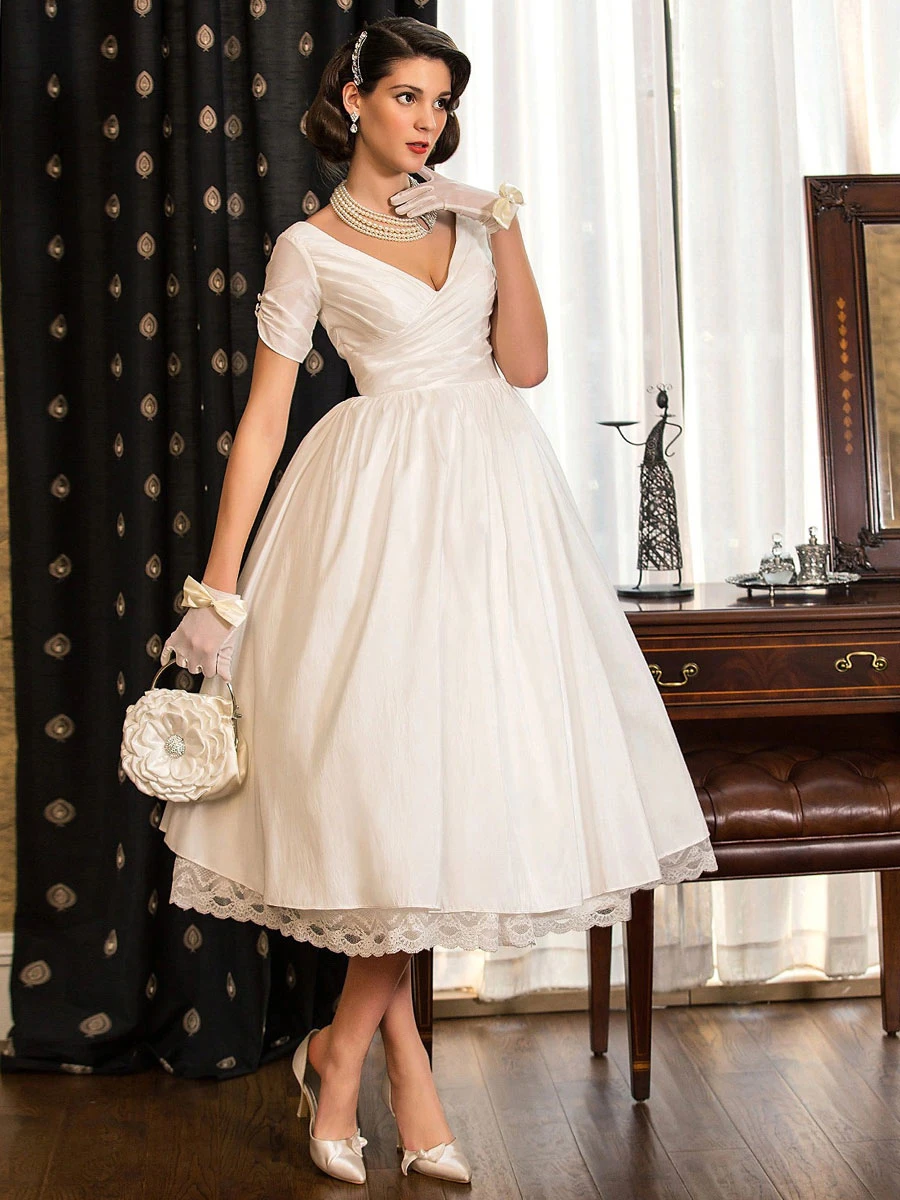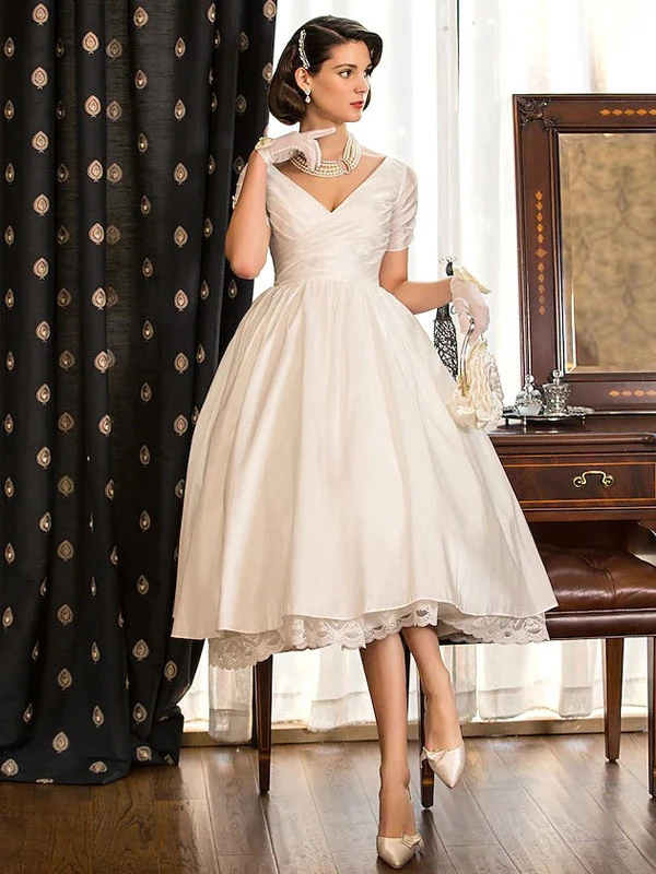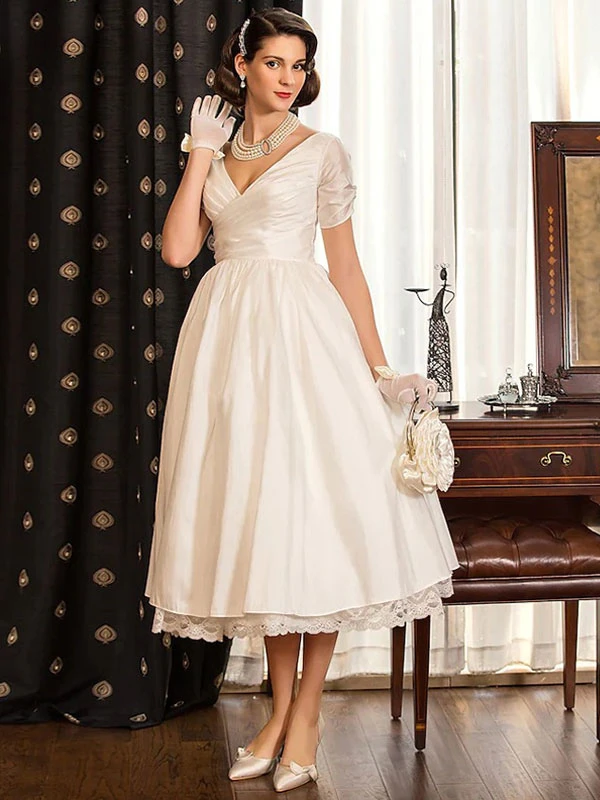 Simple Wedding Dress A-Line V-Neck Short Sleeves Bridal Dresses Free Customization