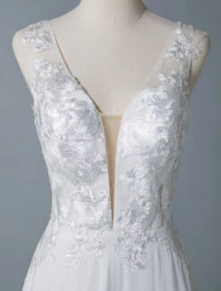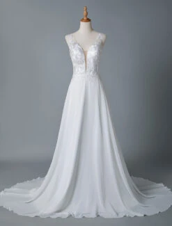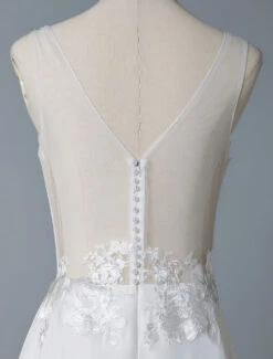 Be the first to review “Simple Wedding Dress A Line V Neck Sleeveless Lace Illusion Back Bridal Gowns” Cancel reply