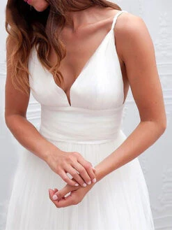 Be the first to review “Simple Wedding Dresses 2023 A Line V Neck Straps Backless Tulle Beach Wedding Bridal Dress” Cancel reply