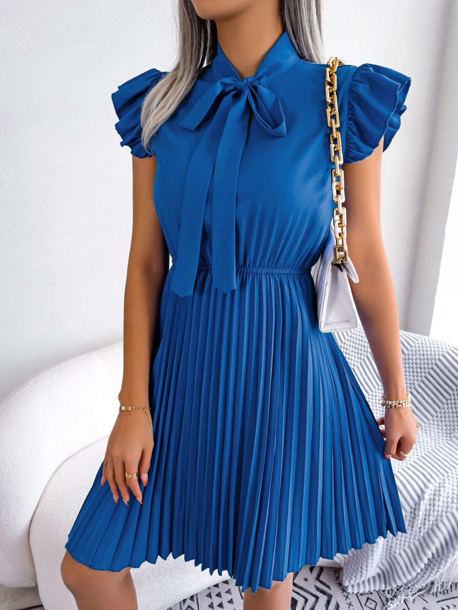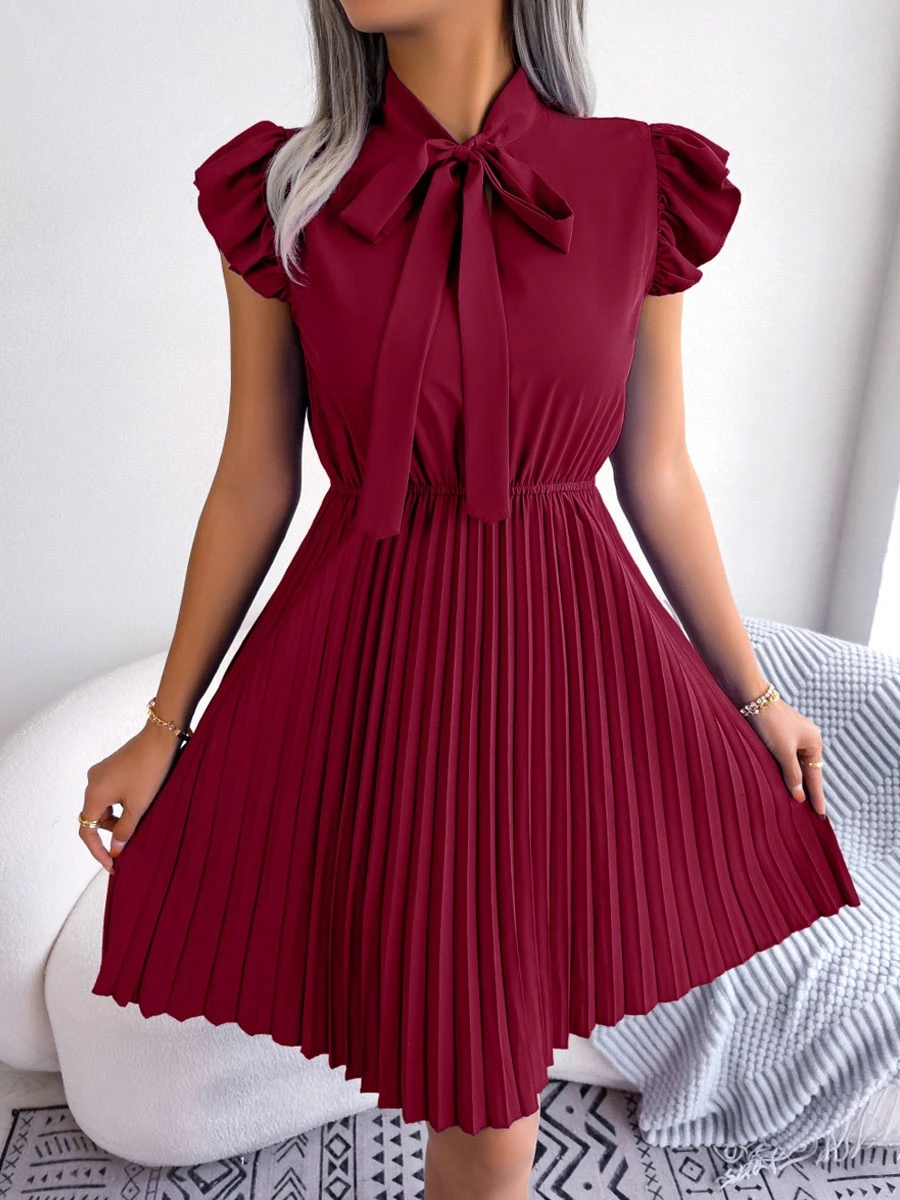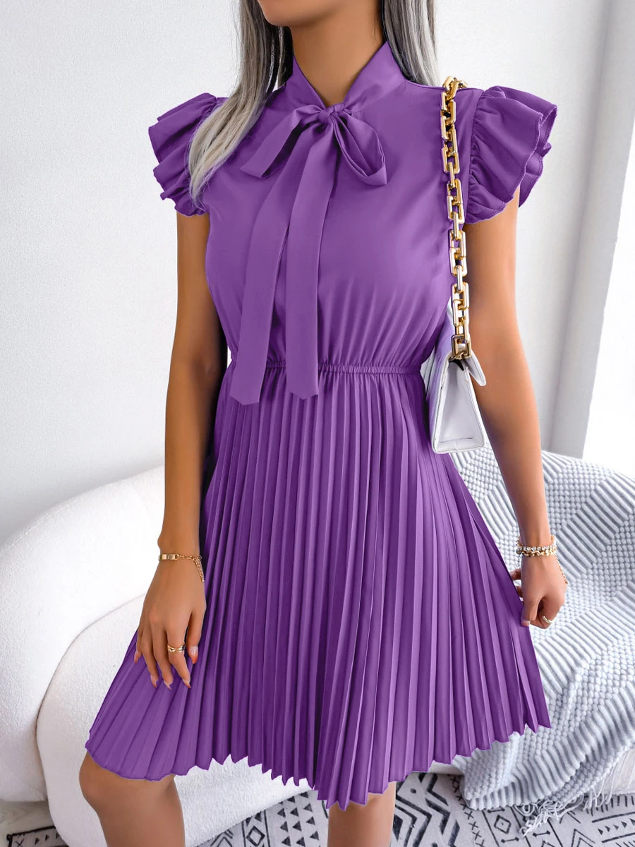 Skater Dresses Stand Collar Lace Up Layered Casual Summer Flared Dress