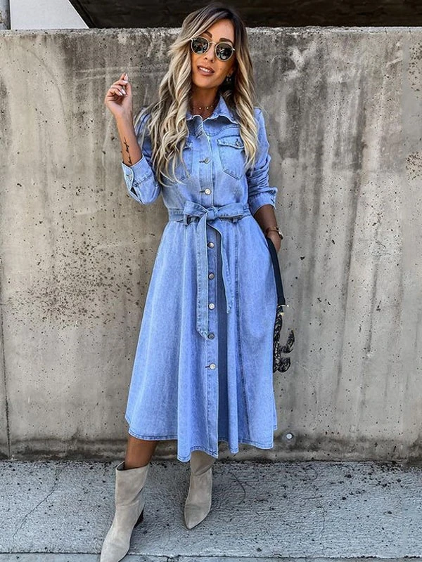 Be the first to review “Skater Dresses Turndown Collar Long Sleeves Buttons Oversized Casual Maxi Fit And Flare Dress” Cancel reply
