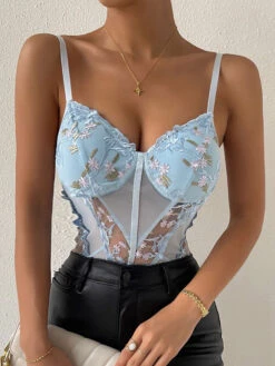 Be the first to review “Spaghetti Strap Corset Sweetheart Sexy Bodysuit For Woman Light Sky Blue Tops” Cancel reply