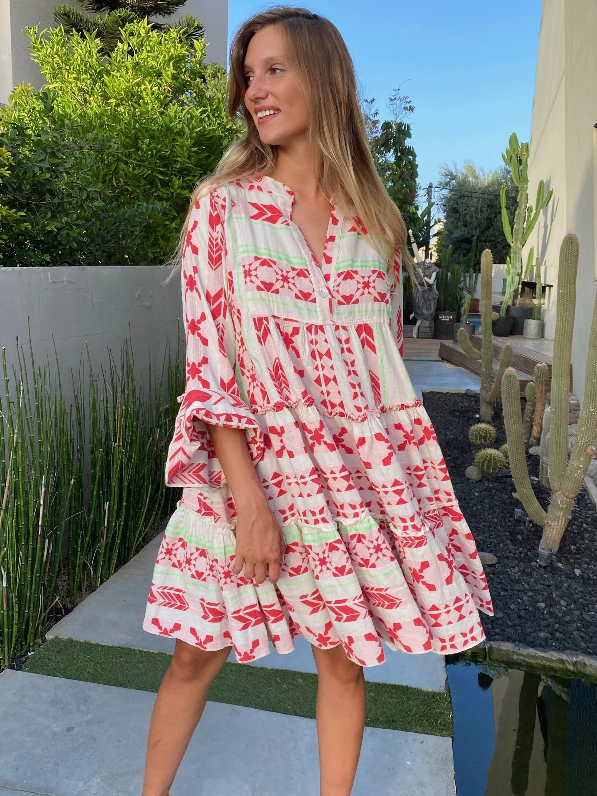 Be the first to review “Summer Dress Red V-Neck Geometric Beach Dress” Cancel reply