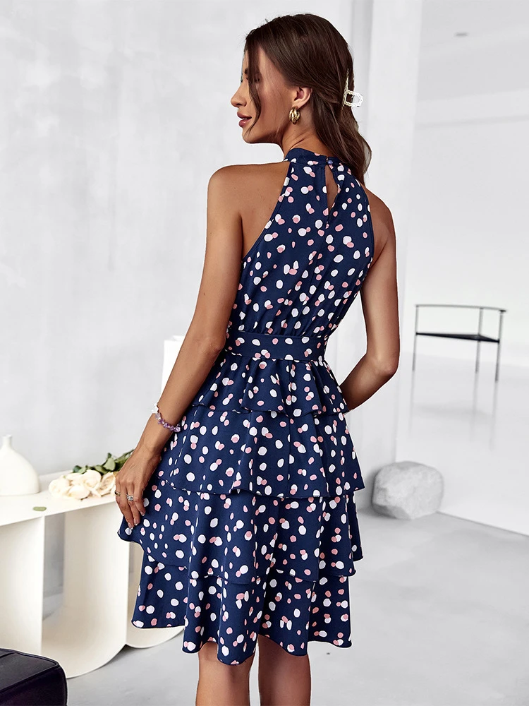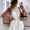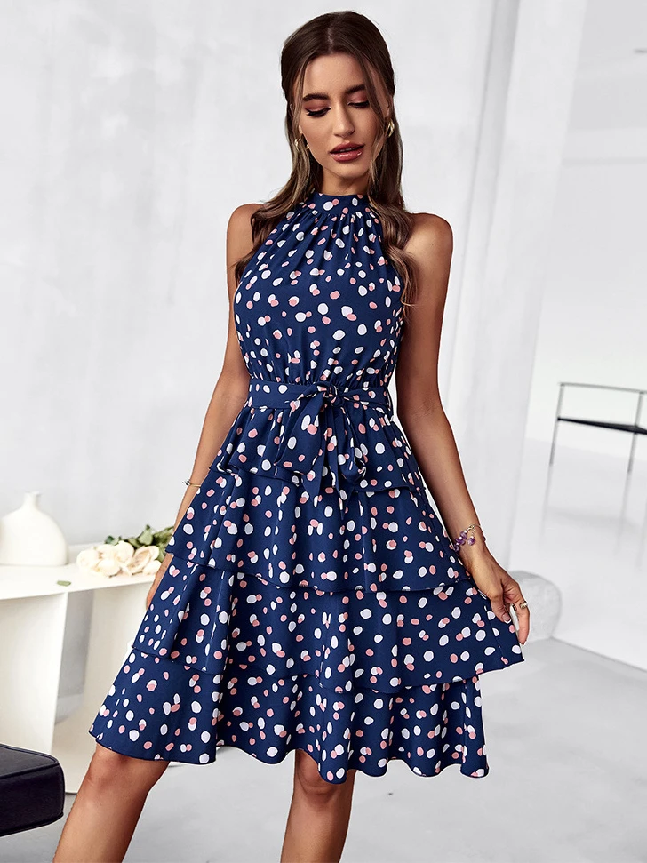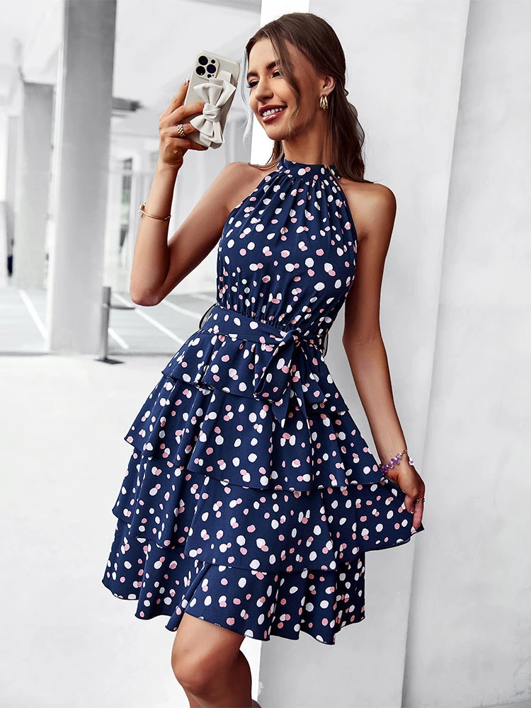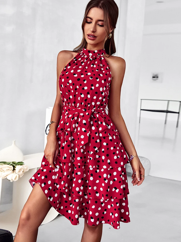 Summer Dress Straps Neck Polka Dot White Short Beach Dress