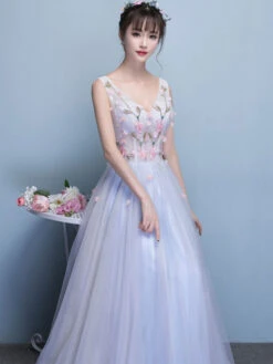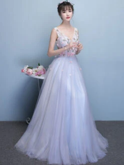 Be the first to review “Tulle Prom Dress Baby Blue 3D Flower Occasion Dress V Neck Sleeveless Floor Length A Line Party Dress” Cancel reply
