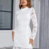 Bodycon Dress White Leopard Print Long Sleeves Sequins Classic V-Neck Layered Sheath Wrap Dresses