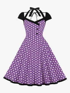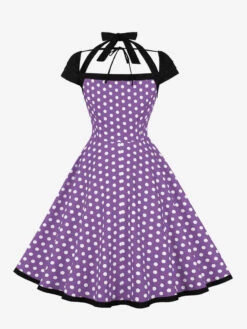 Be the first to review “Vintage Dress 1950s Audrey Hepburn Style Purple Polka Dot Sleeveless Swing Dress” Cancel reply