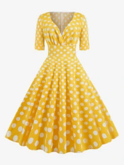 Be the first to review “Vintage Dress 1950s Audrey Hepburn Style Red Polka Dot Short Sleeves V-Neck Swing Dress” Cancel reply
