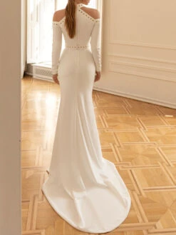 Be the first to review “Vintage Wedding Dress With Train High Collar Long Sleeves Sash Stretch Crepe Bridal Dress” Cancel reply