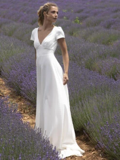 Be the first to review “Wedding Dress With Train V Neck Short Sleeves Buttons Floor Length Bridal Dresses” Cancel reply