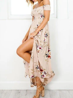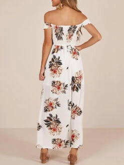 Be the first to review “White Floral Maxi Dress Off The Shoulder Short Sleeve Split Chiffon Summer Dress” Cancel reply