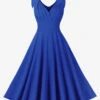 Retro Dress 1950s Audrey Hepburn Style Pink Color Block Woman’s 3/4 Length Sleeves Rockabilly Dress