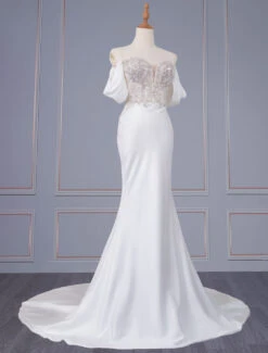 Be the first to review “White Mermaid Wedding Dress V-Neck Short Sleeves Backless Lace With Train Long Bridal Dress Free Customization” Cancel reply