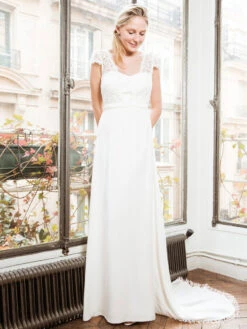 Be the first to review “White Simple Causal Wedding Dress A-Line Strapless Backless Short Sleeves Lace Satin Fabric Long Bridal Dresses Free Customization” Cancel reply