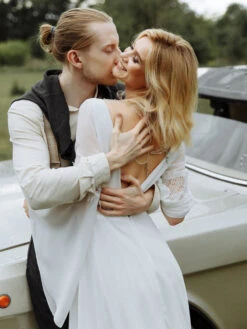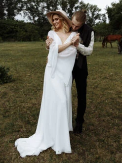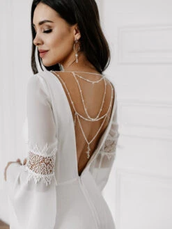 Be the first to review “White Simple Causal Wedding Dress With Train A-Line V-Neck Long Sleeves Backless Chains Bridal Gowns Free Customization” Cancel reply