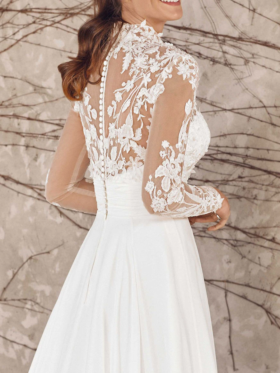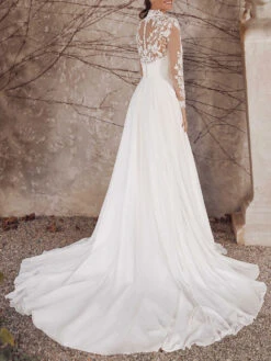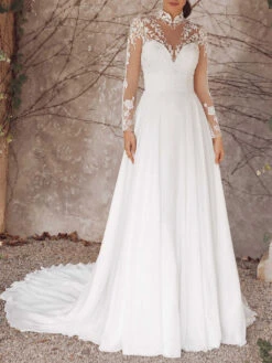 Be the first to review “White Simple Wedding Dress With Train High Collar Long Sleeves Lace A-Line Bridal Dresses Free Customization” Cancel reply