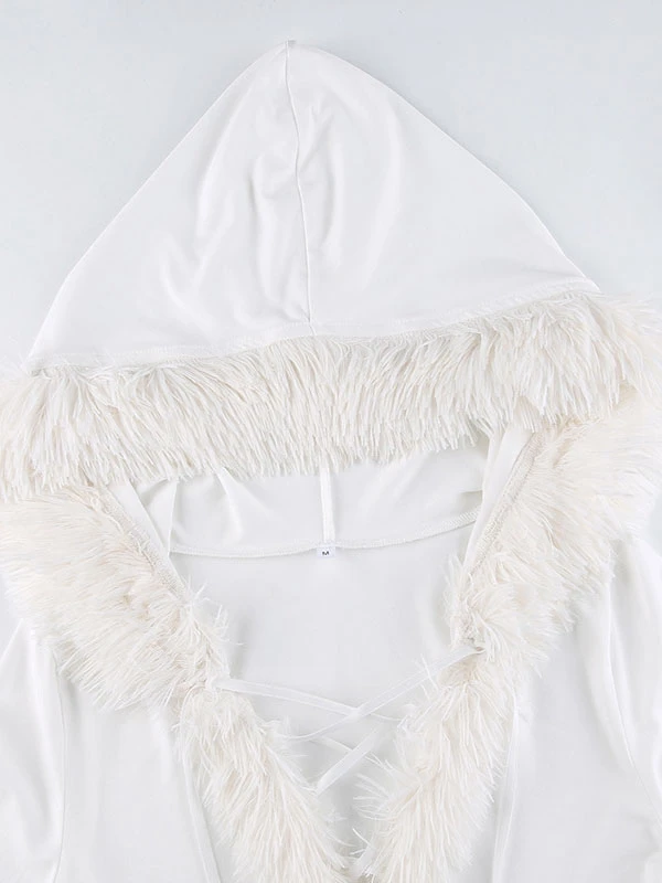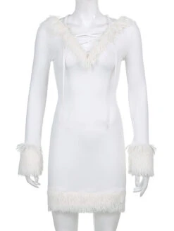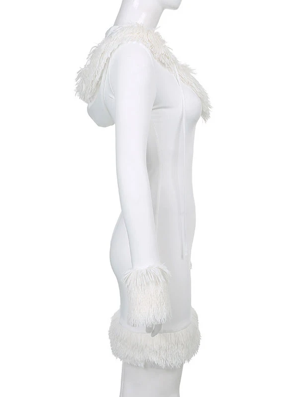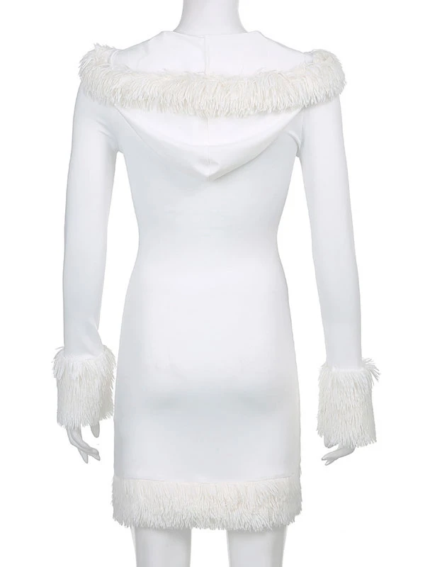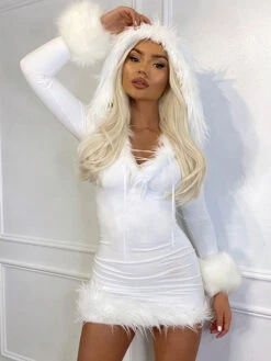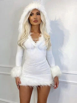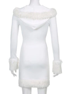 Women Bodycon Dress White Hooded Long Sleeves Stretch Christmas Halloween Cos Holiday Dresses