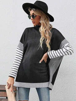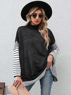Be the first to review “Women Pullover Sweater Black Stripes High Collar Long Sleeves Sweaters” Cancel reply