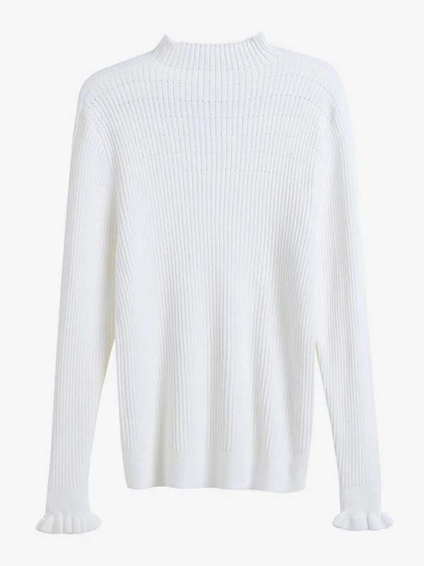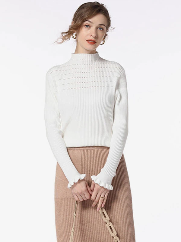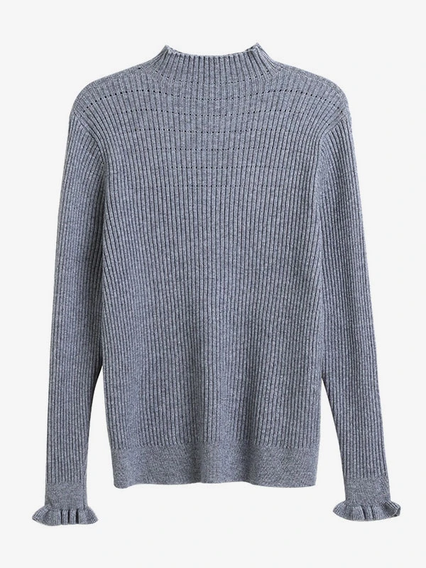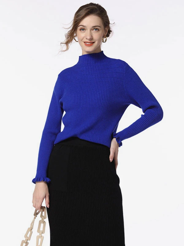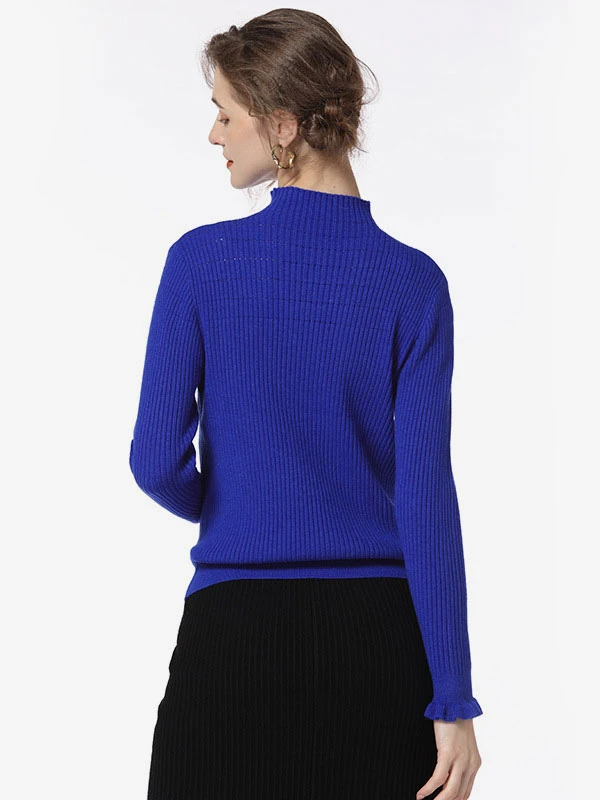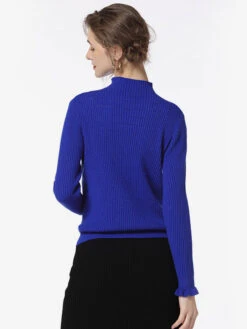 Women Pullover Sweater Blue High Collar Long Sleeves Sweaters