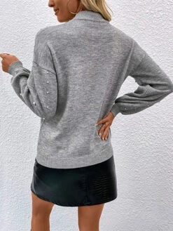 Be the first to review “Women Pullover Sweater Gray Studded High Collar Long Sleeves Acrylic Sweaters” Cancel reply