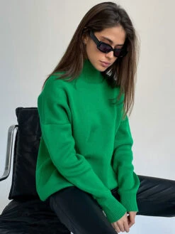 Be the first to review “Women Pullover Sweater Green High Collar Long Sleeves Sweaters” Cancel reply