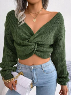Be the first to review “Women Pullover Sweater Hunter Green Pleated V-Neck Long Sleeves Acrylic Sweaters” Cancel reply