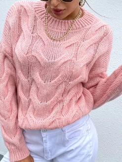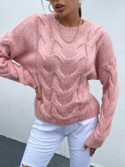 Be the first to review “Women Pullover Sweater Pink Crochet Jewel Neck Long Sleeves Stretch Sweaters” Cancel reply
