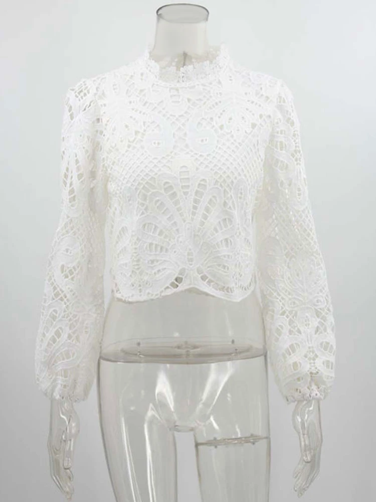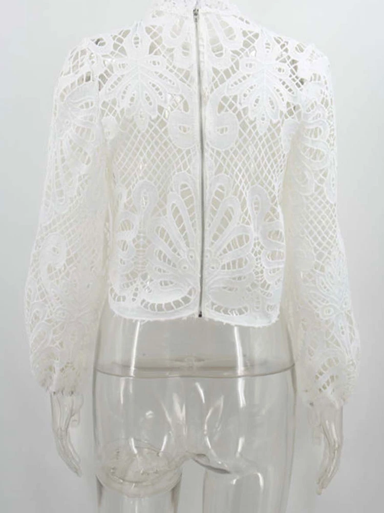 Women Shirt White Cut Out Jewel Neck Casual Long Sleeves Casual Tops