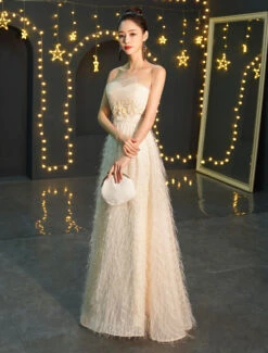 Evening Dress Split Sheath Long Dress V Neck Sweep Short Sleeves Pleated Formal Party Dresses