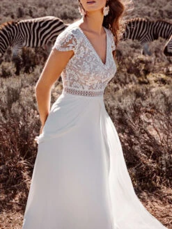 Ivory Boho Wedding Dress Chiffon Split Front A-Line Sweep Backless Sleeveless V-Neck Bridal Dresses