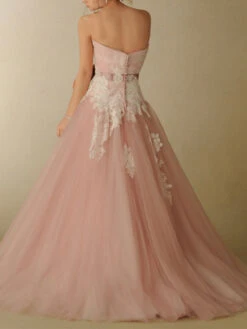 Princess Ball Gown Wedding Dresses Strapless Tulle Ivory Beading Floor Length Bridal Dress