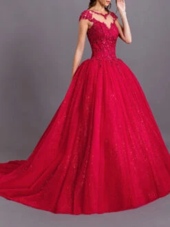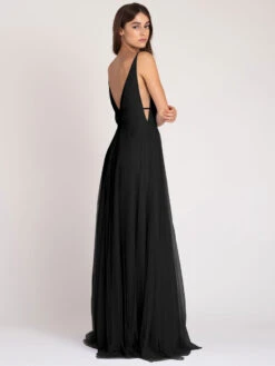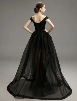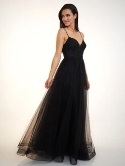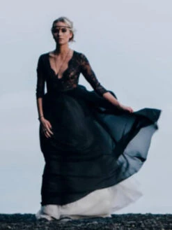 Black Wedding Dress With Train V-Neck Sleeveless Backless Polyester Lace Tulle A-Line